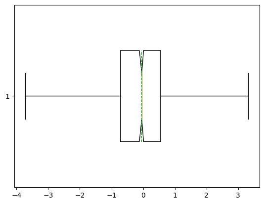plt.boxplot(data, vert=False, notch=True, bootstrap=10000, whis=3,